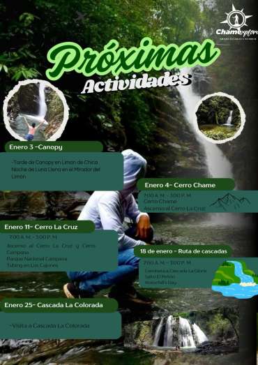 Vive el verano explorando Chame con Chamexplora. Participa de su agenda de actividades que ofrece Canopy, ascenso a el cerro Chame, rutas de cascadas para quienes buscan aventura, naturaleza y experiencias auténticas.